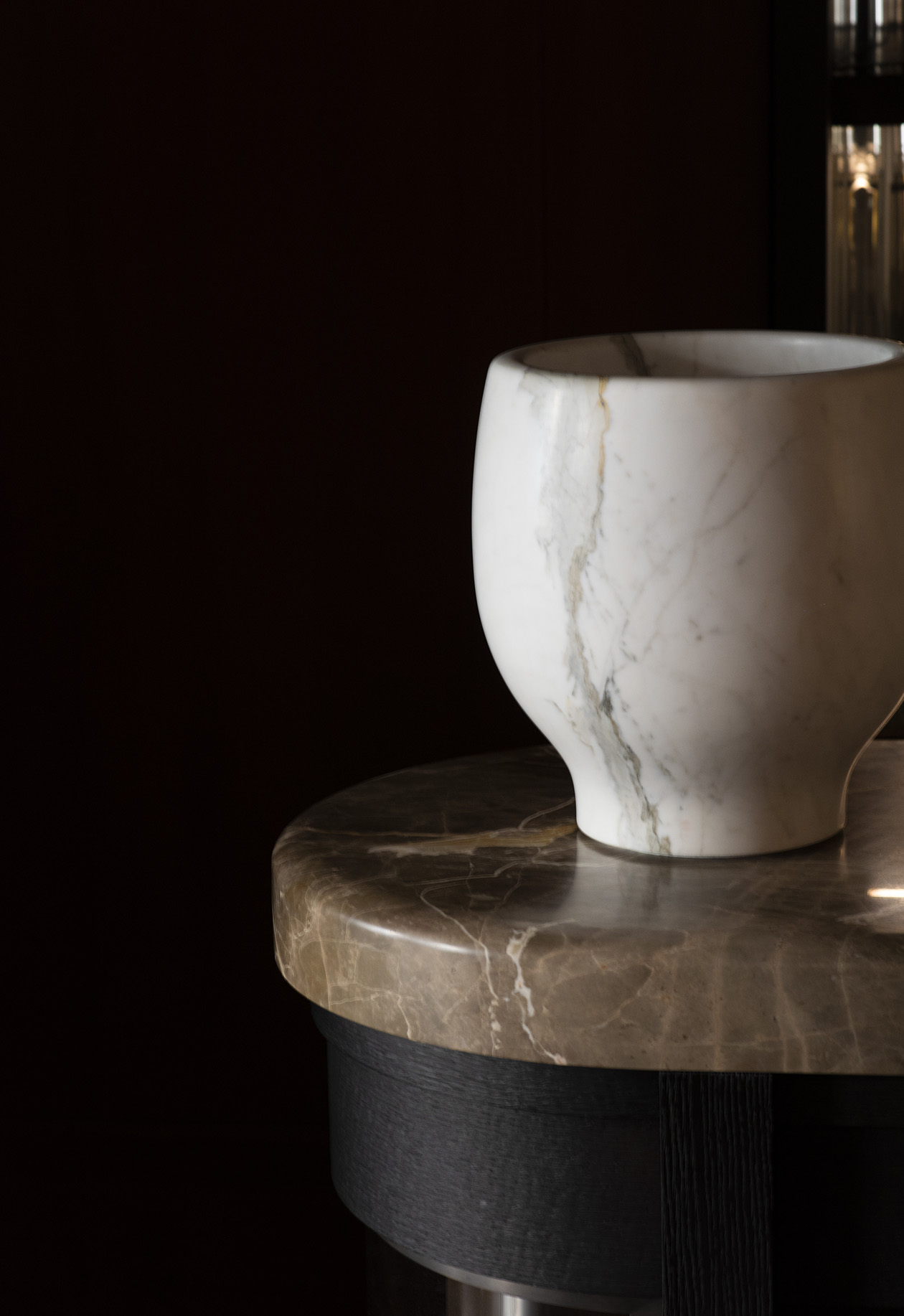 Mais manipuler ces matériaux, dont certains sont très présents, requiert une certaine délicatesse… Le Studio maîtrise subtilement leur usage en leur conférant un rôle plus ou moins grand : ces matériaux à effets peuvent s’affirmer comme un manifeste à l’exemple du bar à expresso en onyx vert dans une maison à Münich, ou de manière théâtrale du bar en onyx de l’Imperial Treasure de Londres.