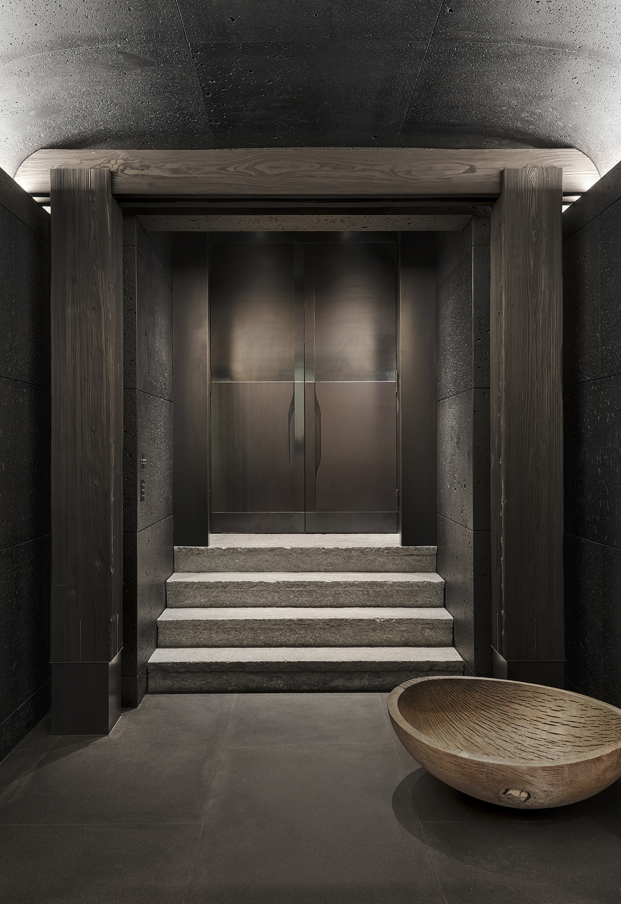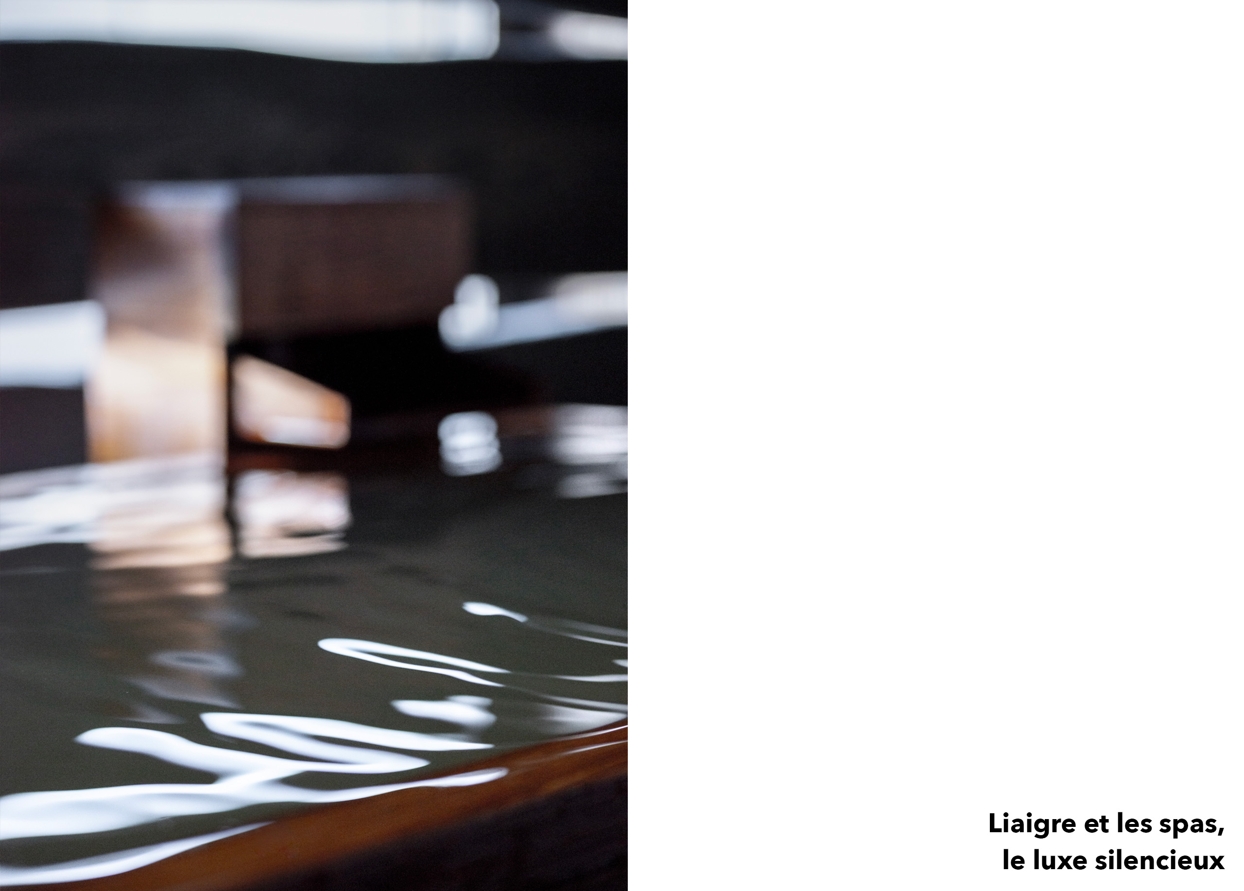 Refuge confortable, cocon, en plein cœur de la ville, à la montagne ou ailleurs le Spa offre un temps suspendu. Chaque pièce : entrée, vestiaire, hammam, sauna, piscine, salle de massage, salle de sport, s’affirme comme l’une des séquences d’un rituel, durant lequel chacun redevient maître de son temps et d’un imaginaire qui échappe au réel ou du moins au quotidien. Dans l’aménagement de ces espaces, Liaigre exprime certaines de ses fascinations esthétiques : celle du Japon, mais aussi celle de la nature qui se reflète dans un choix de matériaux qui tous ramènent au paysage. Mais Liaigre y affirme également ses convictions vis-à-vis du ressenti : matériaux tactiles, harmonie des proportions, réflexion sur les relations entre corps et architecture, déplacements dans l’espace, confort visuel mais aussi sonore. Cette sophistication absolue s’exprime le plus subtilement du monde, dans un langage sans ostentation, un silence luxueux qui a fait de Liaigre le partenaire d’une clientèle exigeante.
