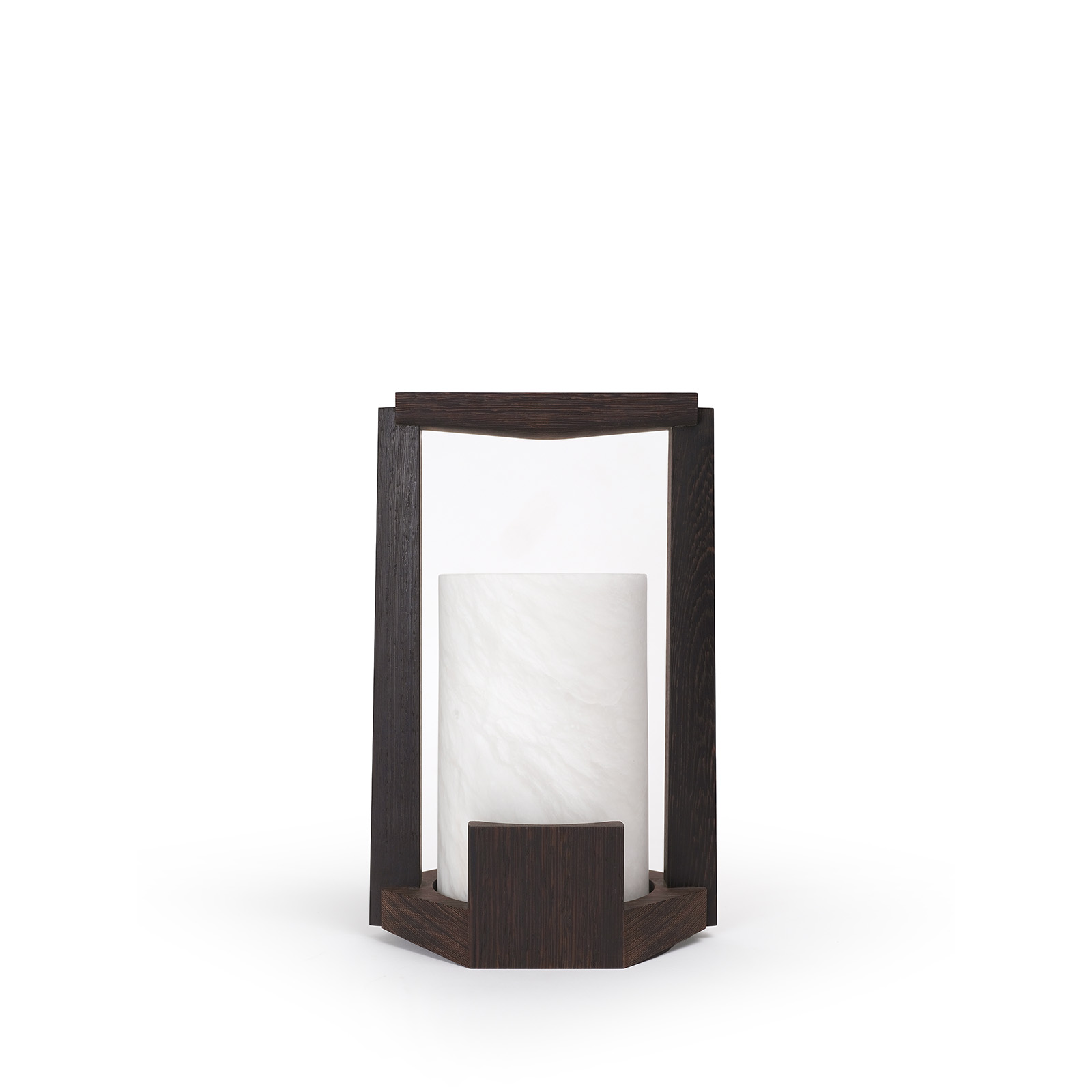Derrière un intitulé évocateur, la lanterne Lagune est une lampe nomade dont la fonction s’inspire des baladeuses traditionnelles. Son design rigoureux et sa silhouette caractéristique imposent sa présence élégante. Sa ligne simple révèle sa subtilité à travers le dialogue entre sa structure en bois de wengé huilé et son réflecteur en verre soufflé coloré (rouge, ambre) ou en albâtre blanc. Coiffée d’un verre texturé Lagune est une invitation poétique au jardin, mais habillée d’albâtre blanc elle s’affirme délibérément urbaine. Facile à vivre, elle peut s’installer sur un chevet, une table basse ou un bureau et vous accompagner au jardin ou en terrasse.